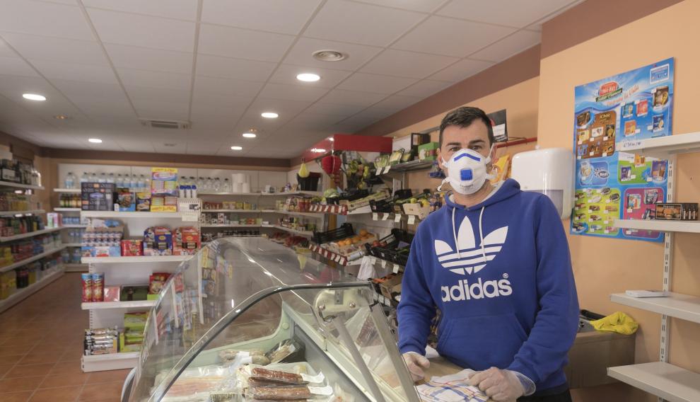 Javier Zorrilla también es un héroe en esta emergencia, no con bata sino con delantal, porque tener una puerta abierta en las actuales circunstancias conlleva un riesgo añadido para estos tenderos que regentan pequeños negocios de alimentación en Albalatillo con 176 habitantes