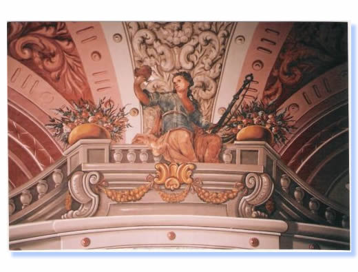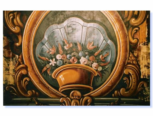 Altar principal-- Boveda principal -- Detalle boveda lateral derecha-- Centro floral de una de las cupulas